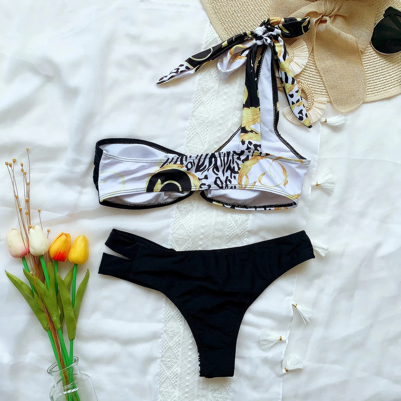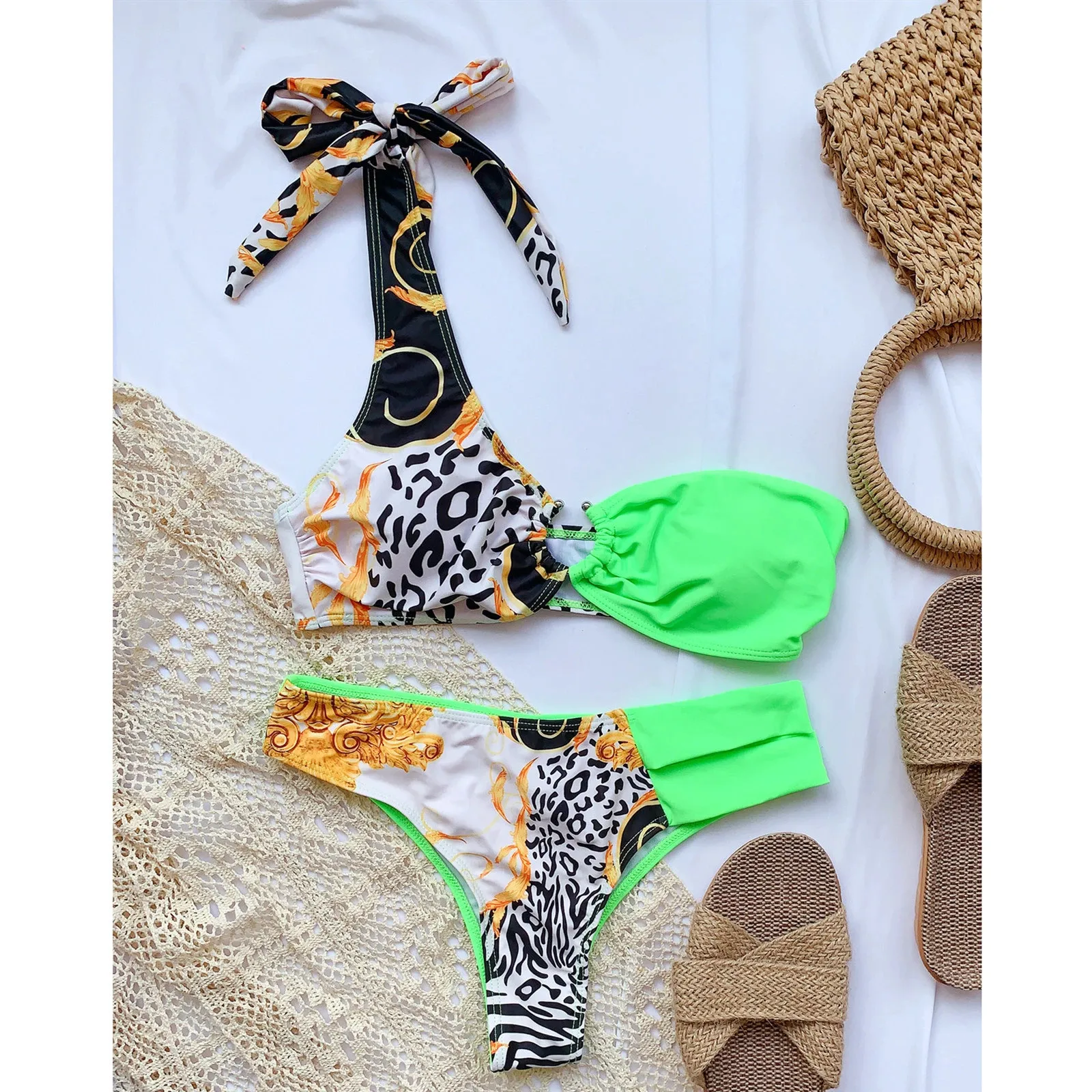 Sexy Swimsuit Women High Waist Bikini Printing Swimsuit